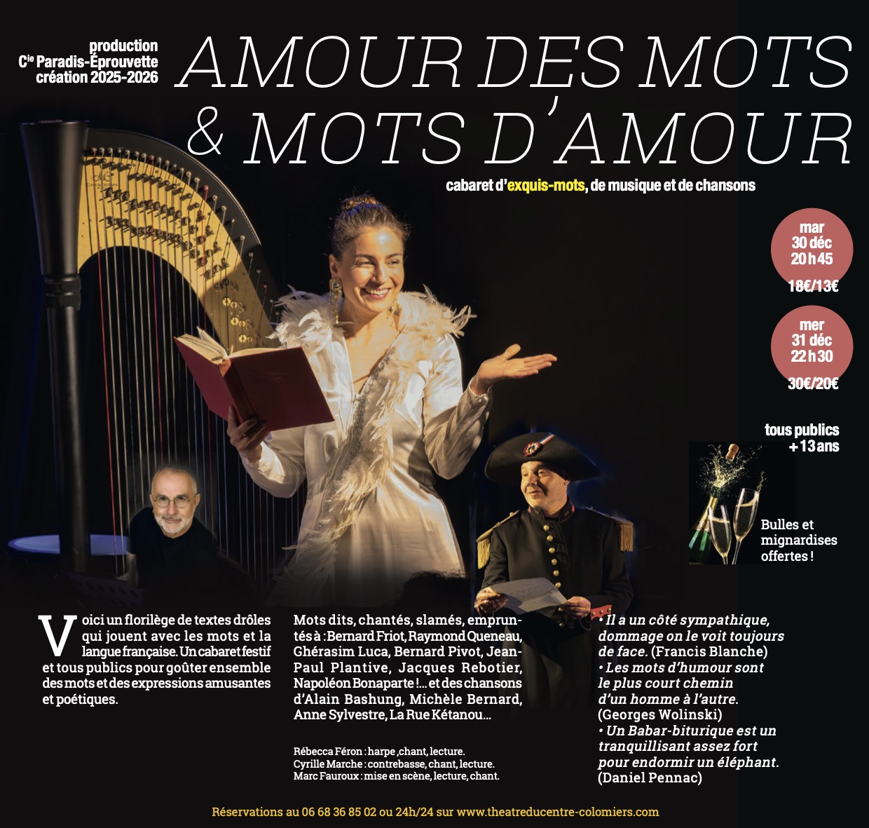 Voici un florilège de textes drôles qui jouent avec les mots et la langue française. Un cabaret festif et tous publics pour goûter ensemble des mots et des expressions amusantes et poétiques.