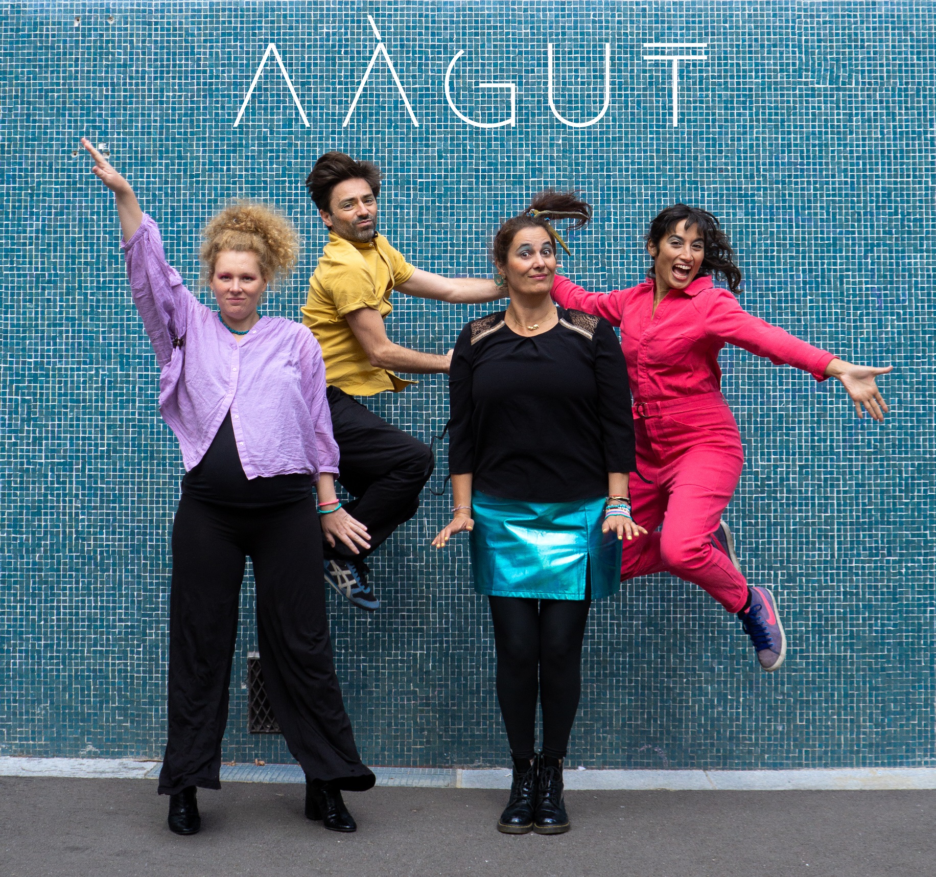 Trois voix de femmes jouent sur scène une partition multiple : tantôt délicates et touchantes, elles peuvent nous emporter jusqu’à la transe. Les percussions ajoutées à ces polyphonies et polyrythmies, invitent à la danse avant de revenir au minimalisme et la pureté d’un chant ancestral. Puisant dans le répertoire populaire des Pyrénées et plus particulièrement du Béarn, Aàgut nous amène jusqu’à la Galice, suivant la crête qui relie le Sud de la France au Nord de l’Espagne.