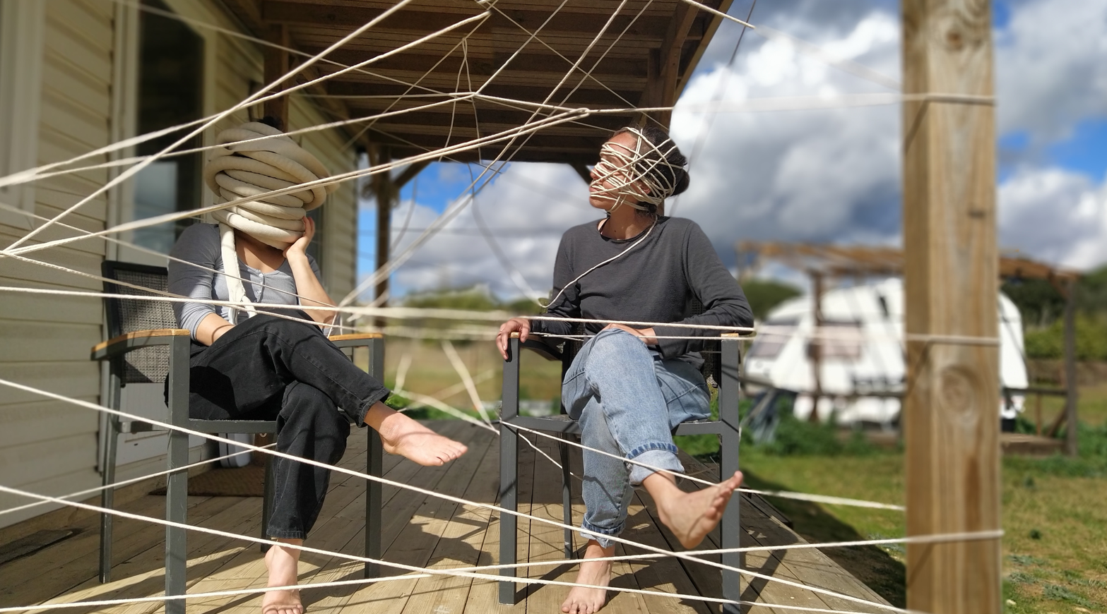 "Tira" signifie « tirer », ce geste simple et universel qui évoque tension, résistance et nécessité d’équilibre pour ne pas tomber. Cette tension physique devient ici une métaphore d’une tension émotionnelle. Un duo se construit et se déconstruit au rythme des tensions, entre ficelles, cordes, gestes suspendus et silences. Elles veulent sentir, ressentir à nouveau… le nouveau… pour toujours… coûte que coûte. Où commence la manipulation ? Peut-on aimer sans se perdre ?