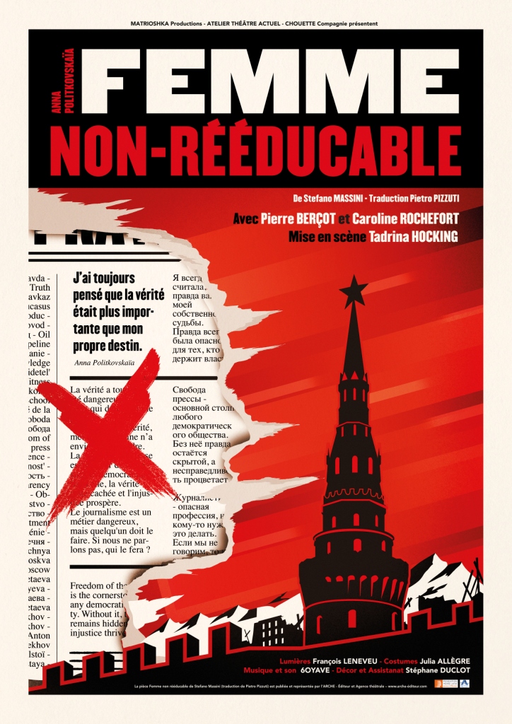 À partir de ses notes, de ses écrits, de ses interviews, l’auteur Stefano Massini, internationalement reconnu a écrit cette pièce, interprétée par Caroline Rochefort (nominée aux Molière pour son interprétation dans Changer l’eau des fleurs » et Pierre Berçot ; la première incarnant Anna et le second représentant les divers interviewés et le narrateur. La mise en scène de Tadriana Hocking vise à faire de cette journaliste engagée jusqu’à la mort une voix universelle.