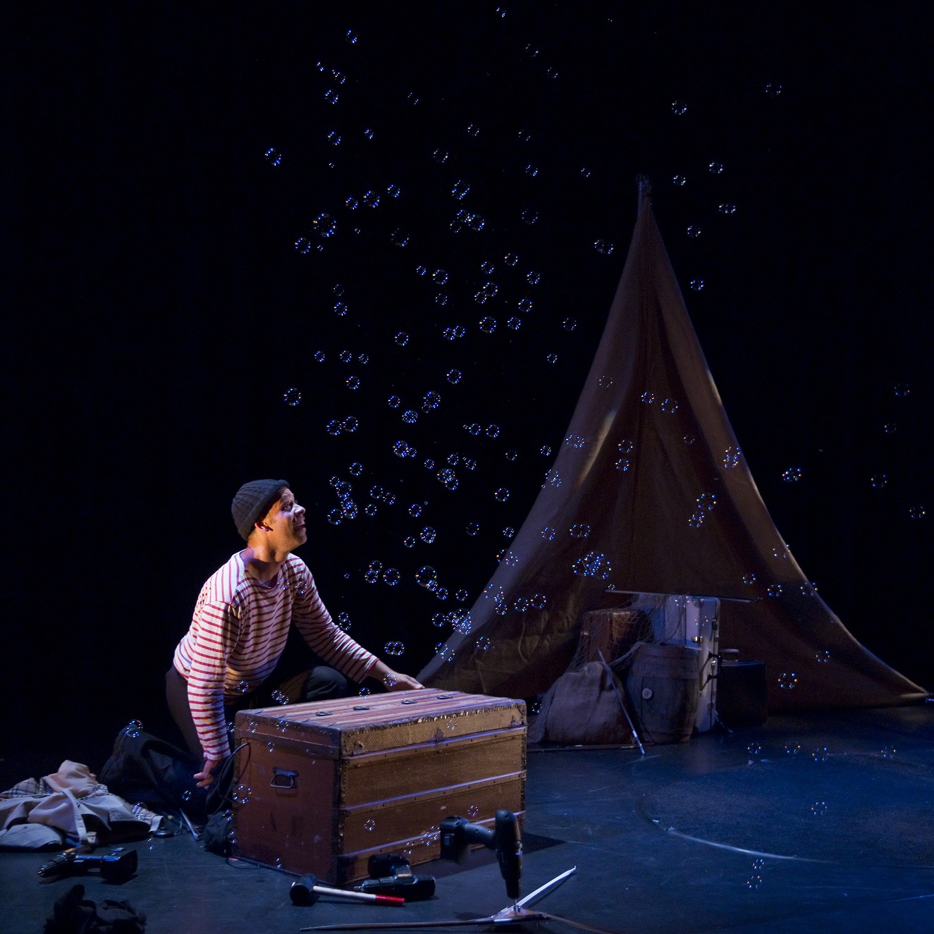 Complètement givré, il passe du violoncelle à la perceuse électrique, des balles aux archets, de la magie aux arts martiaux. Ce personnage excentrique nous montre bien qu’il en faut parfois peu pour être heureux comme un poisson dans l’eau.