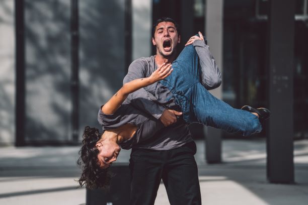 Deux êtres, tour à tour, bousculés, enlisés, percutés, écrasés, propulsés par une destinée qui s’impose à eux : l’exil. Leur jeu est dans l’action, celle qui nous fait avancer coûte que