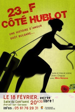 23-F Côté Hublot, c’est la place d’avion qu’occupe Tsvétélina Yordanova le jour où elle accepte de quitter sa Bulgarie natale par amour. Elle sait ce qu’elle quitte, elle sait pourquoi, mais n’a aucune idée de ce qui l’attend. Et si l’amour ne connaît pas les frontières, les méandres de la forêt administrative fran ?aise et les services de préfecture, si ! Basée sur une histoire vraie, cette pièce raconte avec beaucoup d’humour et d’émotion le parcours tumultueux d’une jeune femme qui a décidé de donner coûte que coûte le premier rôle de sa vie à l’amour.