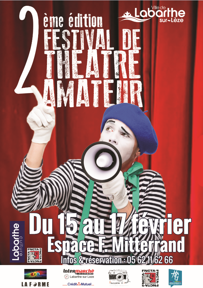 La ville de Labarthe sur Lèze vous présente la 2ème édition du Festival de Théâtre Amateur en partenariat avec la Fédération Nationale des Compagnies de Théâtre et d’Animation (FNCTA).
