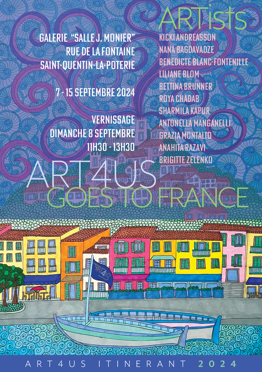 Art4us est une association d’artistes internationaux basée à Washington DC, USA. Chaque année , l’association organise une exposition dans le pays d’un des membres. C’est donc à Saint Quentin la Poterie où réside Bénédicte Blanc-Fontenille qu’Art4us aura le plaisir de présenter les oeuvres de 12 de ses artistes.