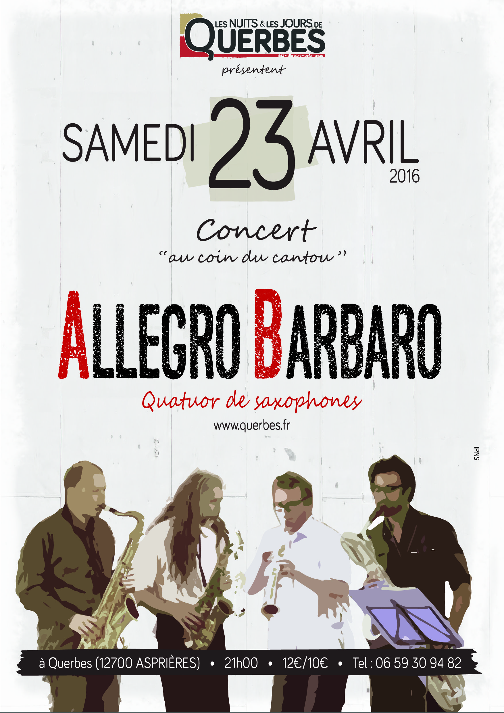 Concert avec le quatuor de saxophones "Allegro Barbaro" dans le cadre de la "Saison au coin du cantou" des Nuits & Jours de Querbes.