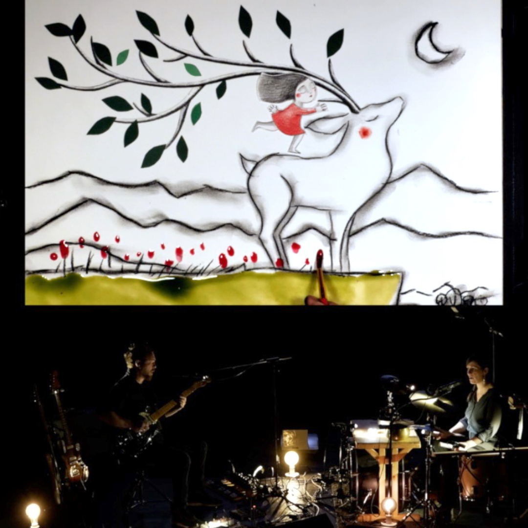 Immergés dans une installation faite de jouets optiques et de machines astucieuses inspirées du début du cinéma d’animation, Kôhba distille son énergie rock chamanique dans une musique aux couleurs singulières, à la fois puissante et délicate, primitive et élaborée.