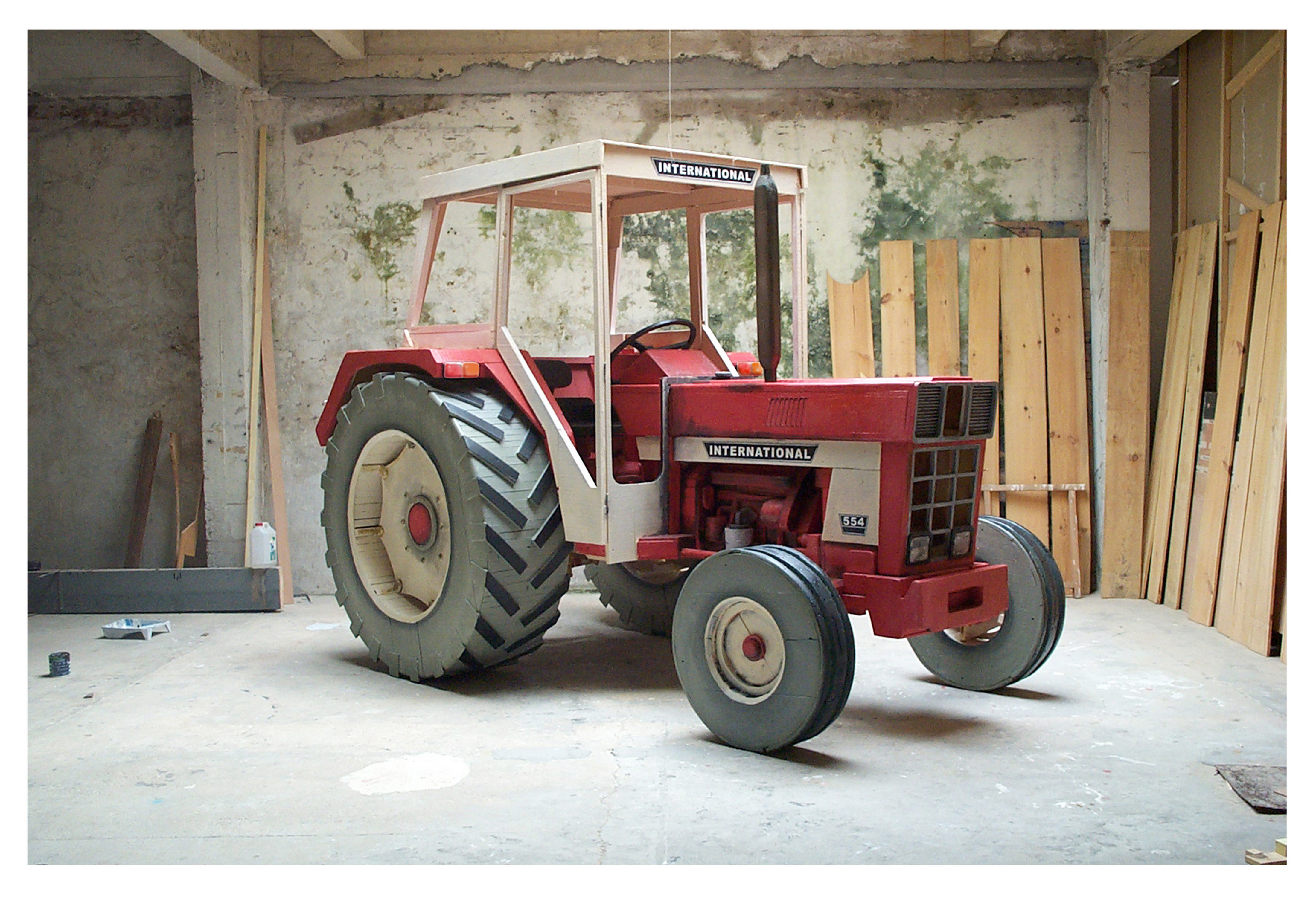 Photo : Pascal Rivet, IH, 2001, collection Frac Occitanie-Montpellier, tracteur en bois réalisé à l’échelle 1, 252 x 350 x 218 cm © Pascal Rivet © photo courtesy de l’artiste