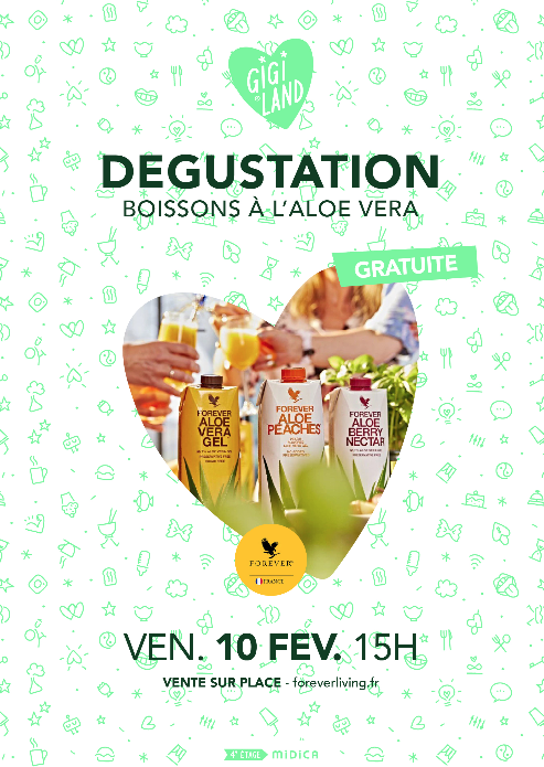 Gigiland propose une dégustation de boissons à base d’Aloe Vera de la marque Forever.