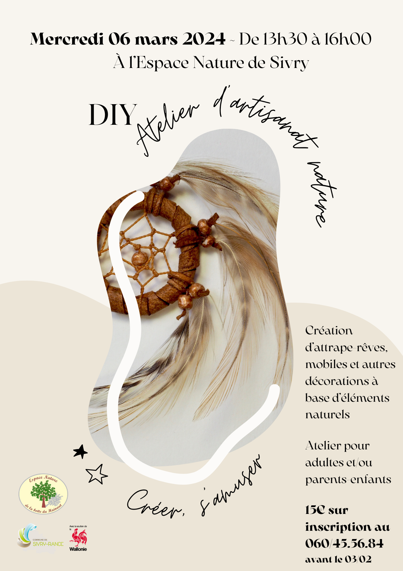 Création d’attrape-rêves, mobiles et autres décorations à base d’éléments naturels. Un atelier pour adultes et/ou parents-enfants.