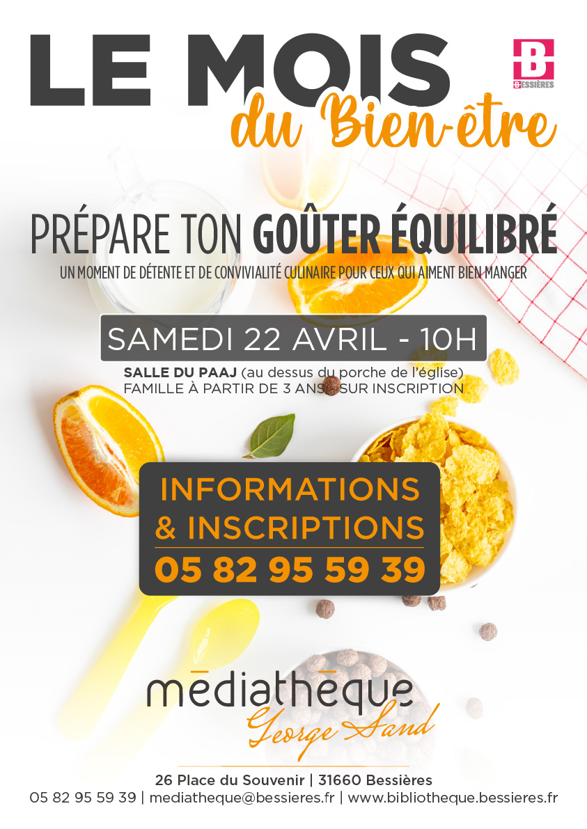 La diététicienne de la ville de Bessières propose un atelier parents-enfants pour préparer en famille un goûter avec des produits simples ( mais bons pour la santé !) Se faire plaisir tout en se faisant du bien...Places limitées à 5 familles. Sur réservation