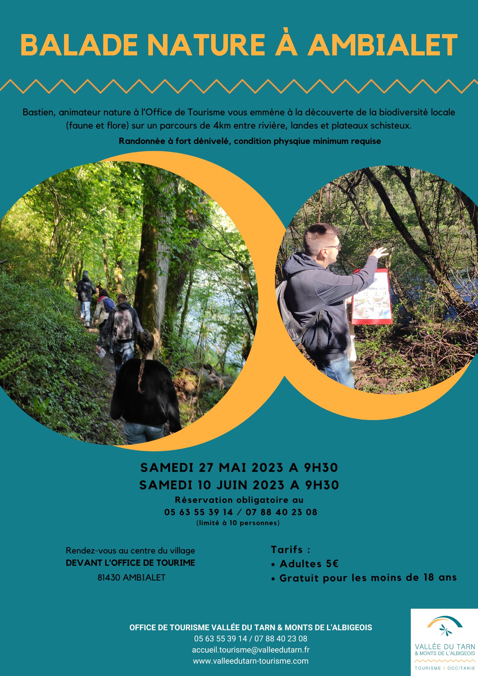 Rendez-vous : devant l’Office de Tourisme d’Ambialet (centre village).