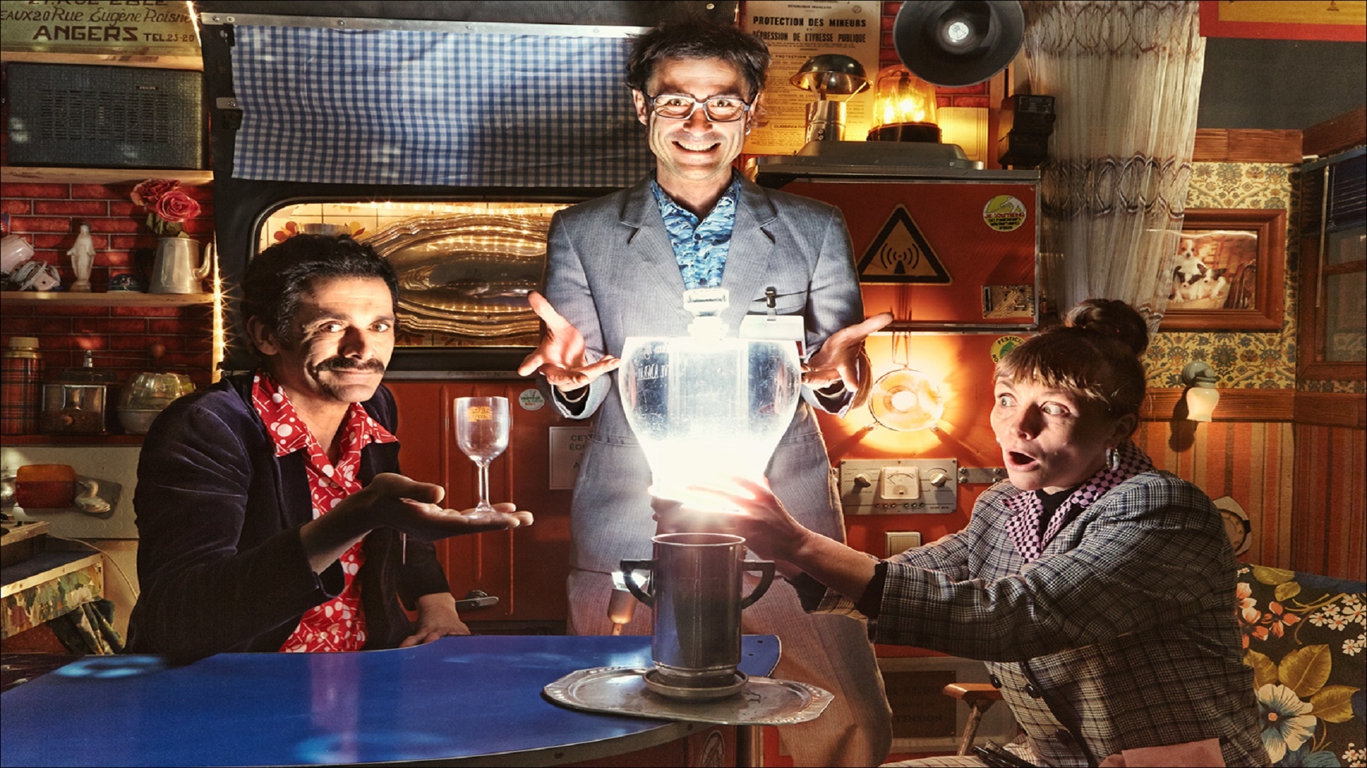 Le « Bar à Mômes » a ébahi la communauté scientifique, en transformant l’eau sèche en eau mouillée. L’eau sèche - incolore, inodore, quasiment invisible - est réhydratée grâce à un appareil épatant qui équipera bientôt tous les foyers quelque peu modernes : le Frigo-onde. Ces ingénieurs prolixes et prosélytes vous proposent des démonstrations édifiantes : fabrication de sirops bio à partir de capsules et d’eau sèche, transformation instantanée de patates en chips, fabrication de vrais bébés en 9 secondes, déshydratation d’enfants vivants...