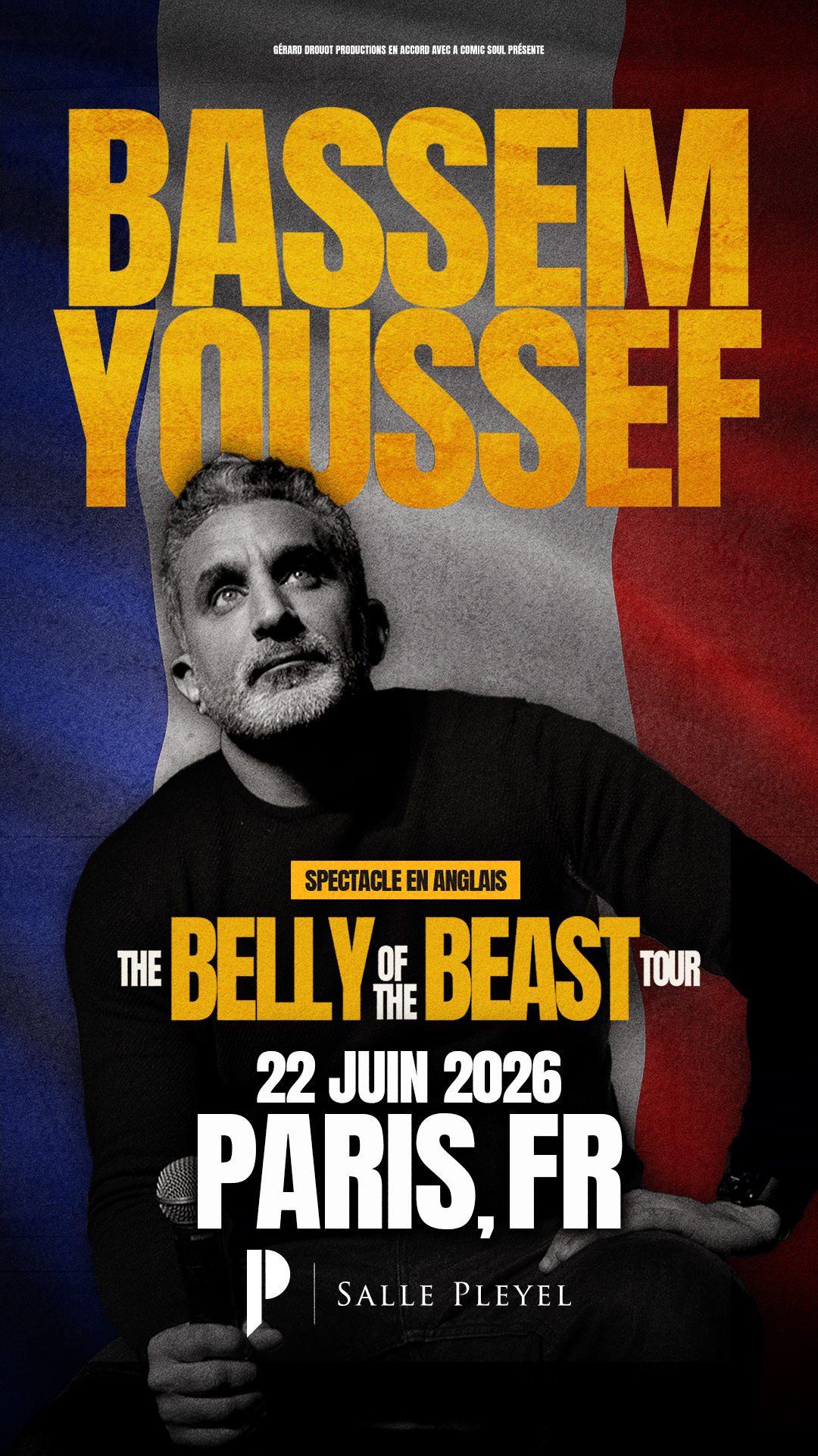 Bassem Youssef, humoriste et figure majeure de la satire internationale, sera de passage à Paris avec son spectacle “The Belly of The Beast”, le 22 juin 2026 à la Salle Pleyel.