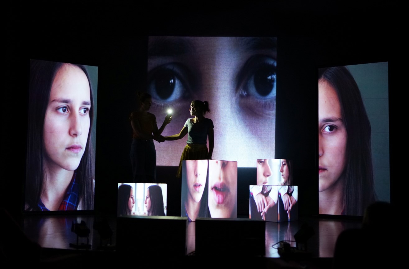 COMPLEXE(S), c’est un spectacle qui parle aux enfants timides, à ceux qui ont les oreilles décollées, ceux qui sont trop petits, ceux qui ont une meilleure copine tellement populaire qu’ils se sentent disparaître. Il parle de l’image de soi confrontée à la norme. L’histoire, c’est Iris et Clémentine qui la racontent. Et elles racontent simplement, avec de savoureux moments saisis sur le vif, ce délicat passage de l’enfance à l’adolescence, où les dés semblent jetés et où rien ne va plus.
