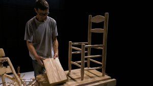 n homme, un tronc de châtaigner, quelques outils traditionnels, un paquet de gestes précis et 1h40 de travail ! Pep Aymerich, artiste et menuisier, construit sous nos yeux une chaise à la main, en temps réel et à l’échelle 1. Simplicité et technicité, temps long et rythme constant participent, dans cette performance, à la création d’un objet du quotidien que vous aurez hâte de découvrir finalisé dès le premier coup de hache. Alors que vous assistez au processus physique de fabrication d’une simple chaise, les frontières entre menuiserie et performance artistique, entre art et artisanat se diluent. Loin des artifices et des impostures, l’homme se penche avec labeur sur son établi, construit lui aussi à la main pour cette œuvre.