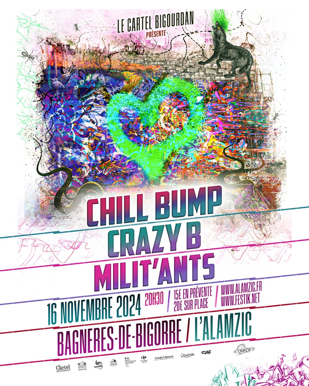 > Milit’ants : Groupe de rap bigourdan dont le nom reflète la fusion entre la force collective et la métaphore de la fourmilière. Fondé par des artistes passionnés, notre groupe tire son inspiration de l’unité et de la détermination, symbolisées par le travail acharné des fourmis au sein de leur colonie. Notre groupe ambitionne de créer un pont entre les talents variés locaux et de l’étendre à l’ensemble du Sud-Ouest, formant ainsi une alliance créative unique. Notre musique se distingue par des paroles percutantes, portant des messages forts sur la solidarité, l’introspection et la lutte pour le changement.