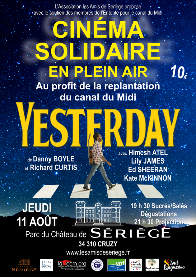 Une toile sous les étoiles ? Amateurs de patrimoine et de 7e art sont conviés à une séance de cinéma en plein air, le jeudi 11 août 2022 au Château de Sériège à Cruzy (34). Cette soirée solidaire, organisée par l’Association les Amis de Sériège, a pour objectif de soutenir la replantation des arbres du canal du Midi, voisin du site. Dégustation de vins et grignotage gourmand seront proposés en amont de la projection du film « Yesterday », une comédie décalée rythmée par les accents du Swinging London et des années 60.