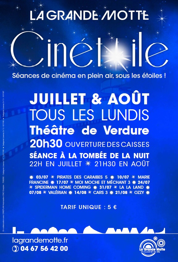 Les séances en Plein Air démarrent à la Tombée de la nuit 22h en Juillet et 21h30 en août
