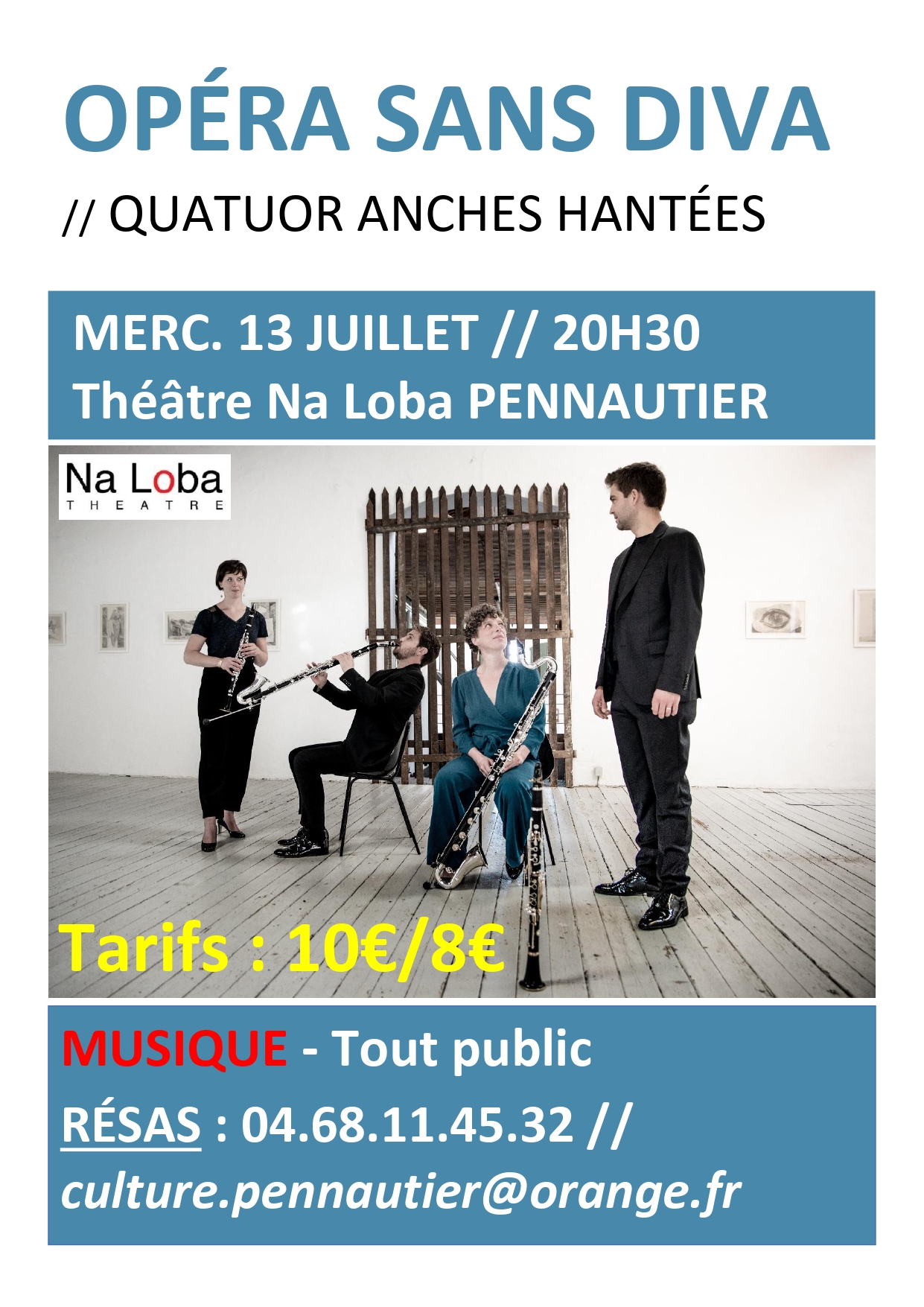 Concert "OPÉRA SANS DIVA" - Quatuor Anches Hantées // MERCREDI 13 JUILLET 2022 à 20H30 // Théâtre Na Loba, PENNAUTIER