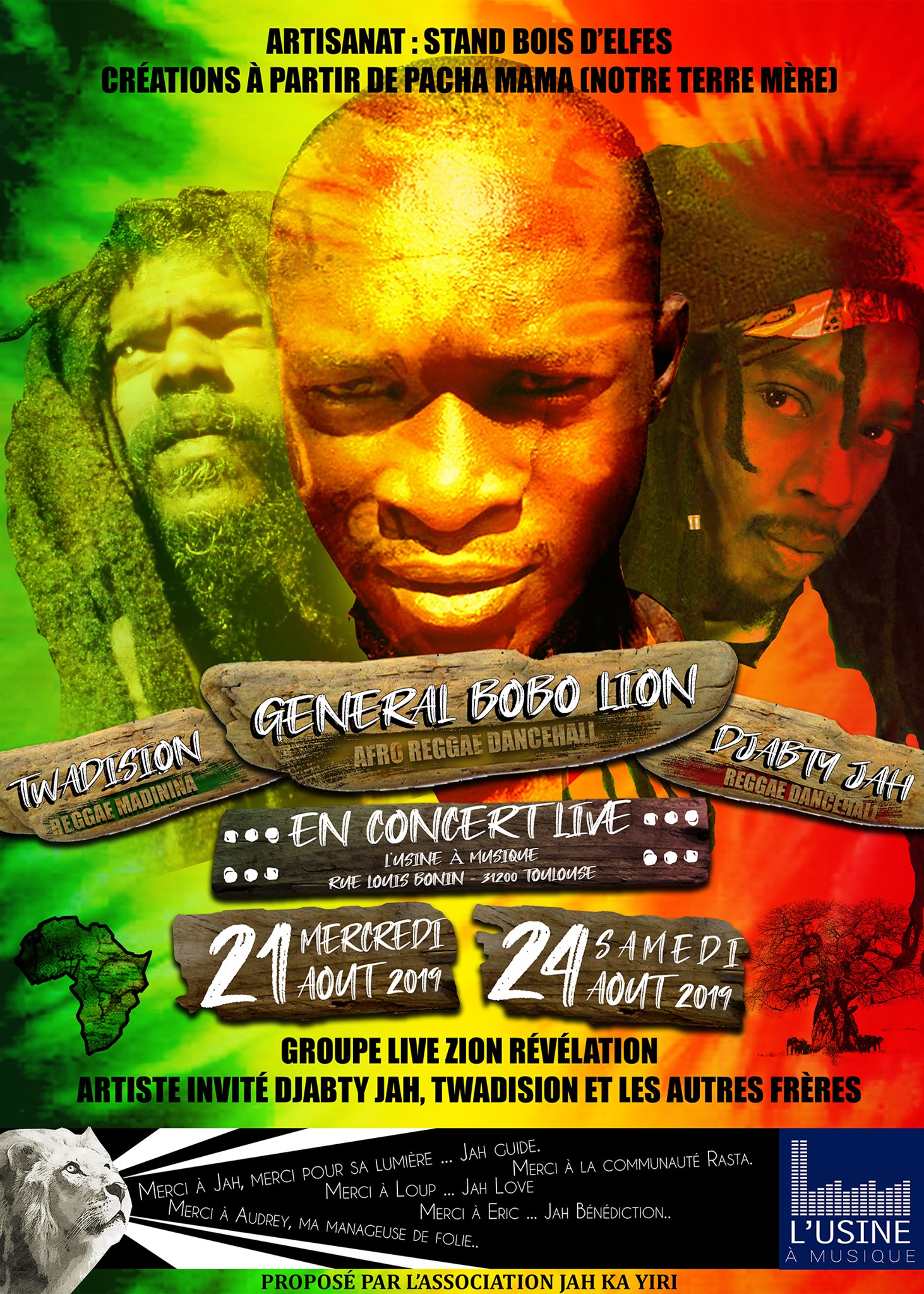 Merci a tout ceux qui me soutienne nous soutiennes ...merci a Mas Abik, Merci a Eric et Alice de L’Usine à Musique, Djabty, Ras Jahby, Geronimo, Général Bobo Lion, Fréd pour le son, et tous les Frères et les Sœurs