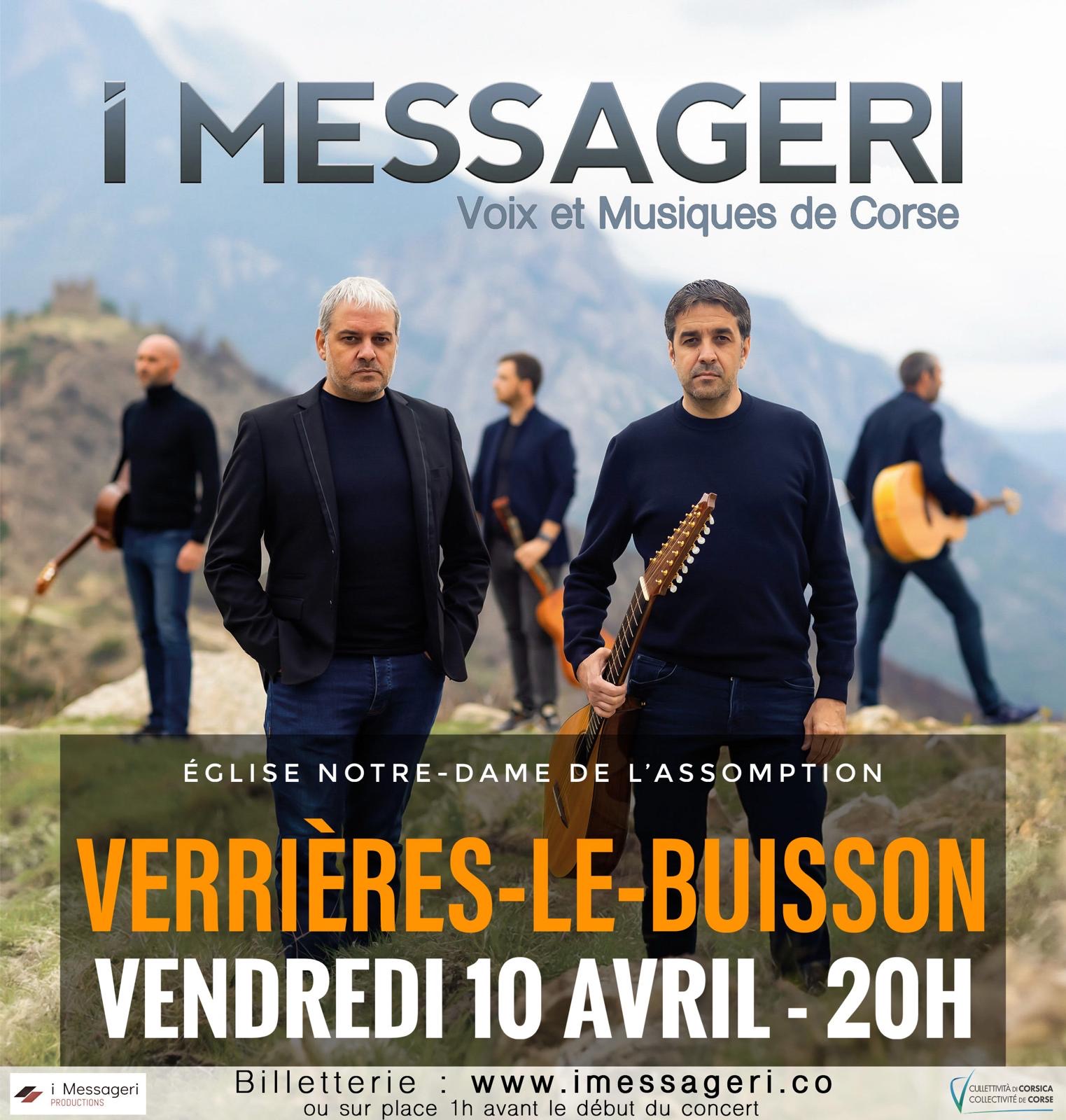 I MESSAGERI PRODUCTIONS présente en concert le groupe corse I MESSAGERI le vendredi 10 avril 2026 à 20h00 à l’Eglise Notre-Dame de l’Assomption de Verrières le Buisson.