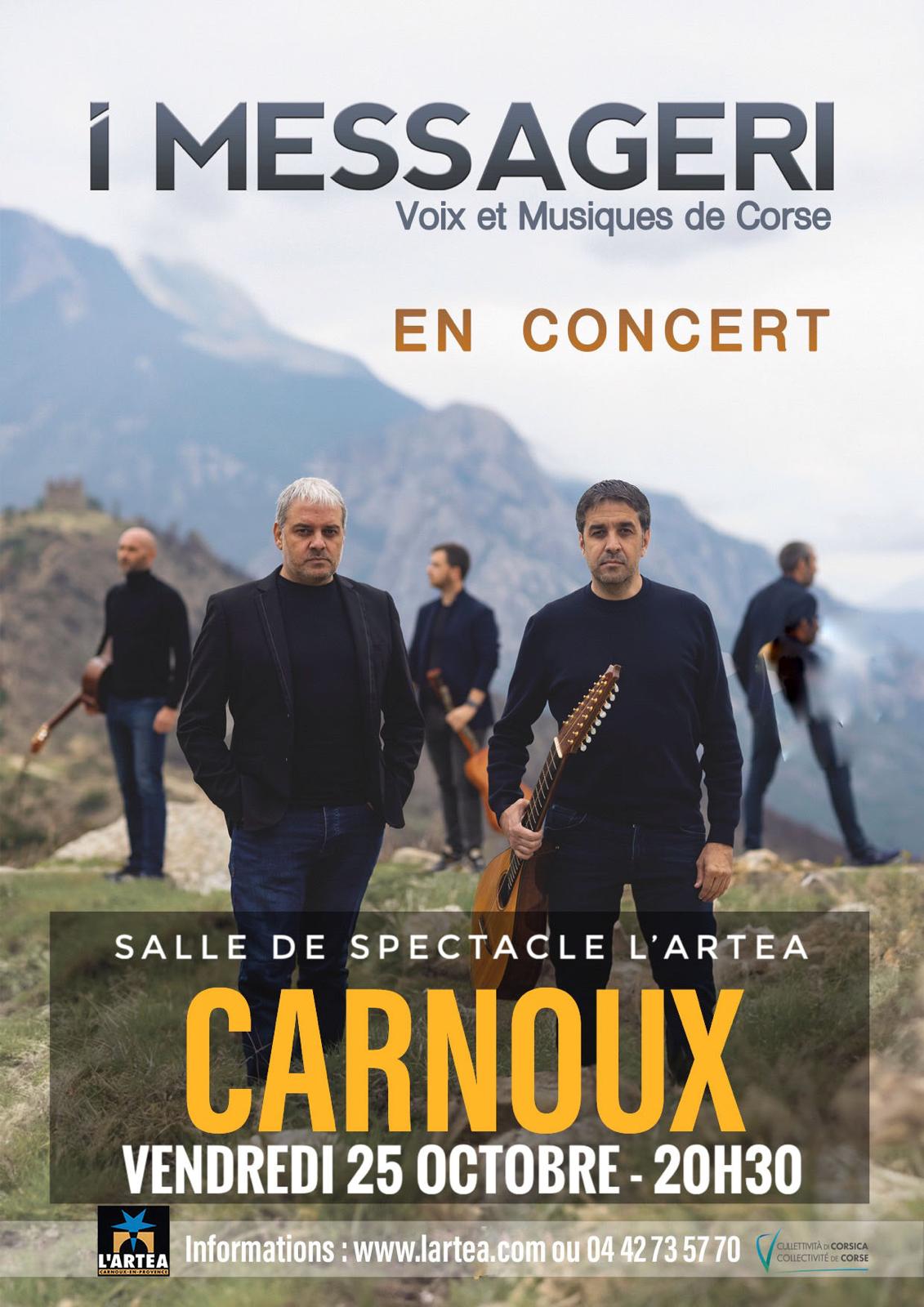 Fabrice et Jean-Michel Andreani, entourés de musiciens de renom, chantent une Corse contemporaine, profondément ancrée dans ses racines, mais toujours soucieux de garder un regard tourné vers l’avenir. Entre musique traditionnelle et rythmes actuels, I Messageri flirtent avec la world pour une musique sans frontière, où la Corse lie les hommes. Au fil des chants, les voix et les mélodies se tressent, s’envolent, touchent la nef d’une église aux couleurs d’encens, le plafond illuminé d’un théâtre, le ciel étoilé d’une place de village, et reviennent comme un refrain, déjà adopté pour accompagner le long des jours.