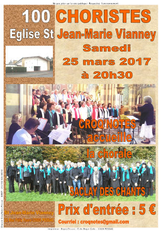 pour un concert commun le samedi 25 mars 2015 à 20H30, à l’église Eglise Saint Jean Marie Vianney
