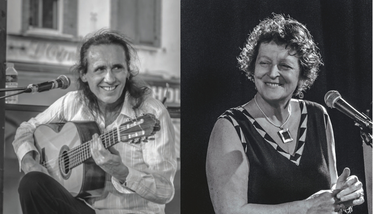 Pour l’accompagner, Serge Lopez, guitariste flamenco, né à Casablanca, est toulousain depuis l’enfance et a vécu quelques années en Espagne. Dans ses gênes toutes les nuances et les parfums de la Méditerranée : France, Maghreb, Espagne. Ces trois cultures le traversent et le nourrissent, apportant une profondeur unique à ses compositions.