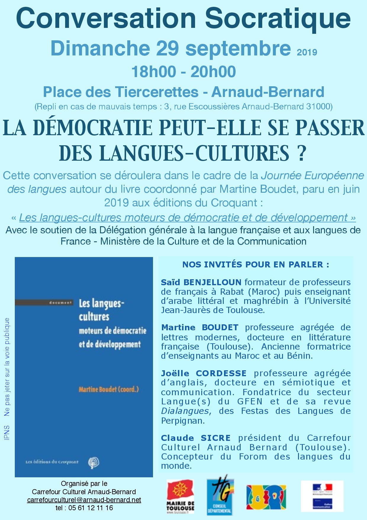Conversation Socratique :LA DÉMOCRATIE PEUT-ELLE SE PASSER DES LANGUES-CULTURES ?"