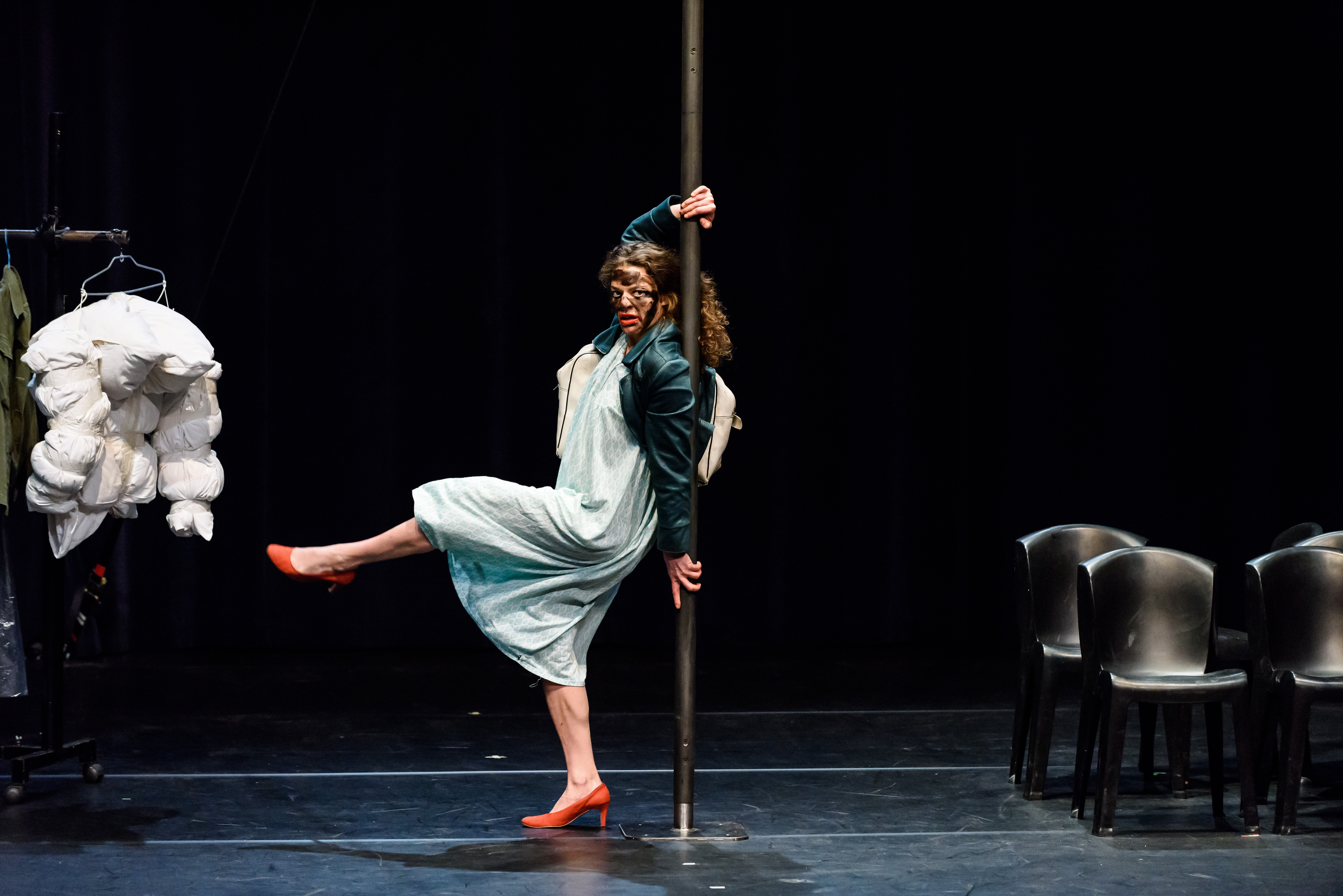 Sandrine Juglair en ouverture, pour deux soirées gratuites : pour mieux raconter la liberté, cette boxeuse en talons hauts escalade son mât chinois et la joue « chair contre fer ». Et puis Laura Murphy, chercheuse circassienne et engagée, qui fait parler son corps et le montre sans détours pour raconter les dominations personnelles, sociales et historiques du corps féminin. Avec une corde et un rouleau de film étirable, cette acrobate britannique rembobine avec humour depuis le début, de la Bible à la biologie, en déroulant anecdotes vécues et brèves de comptoir. Diktat et Contra, deux solos forts.