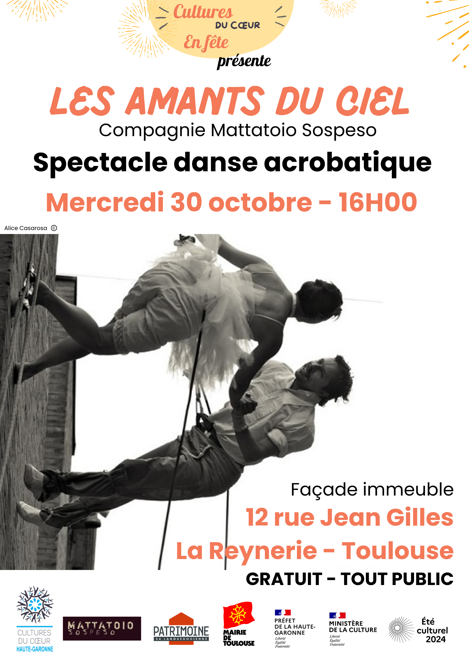 30.10 à 16H : Spectacle de danse acrobatique "Les Amants du Ciel" par la Cie Mattatoio Sospeso, sur la façade de l’immeuble