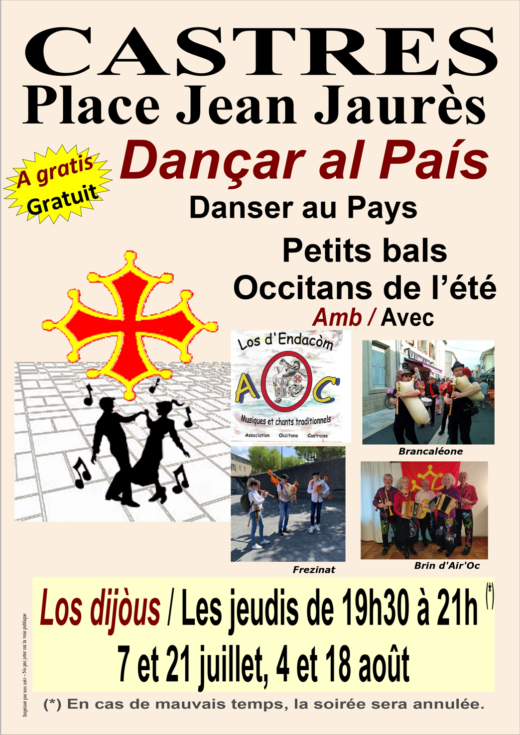 L’Institut d’Études Occitanes – Section Tarn et le Centre Occitan del País Castrés vous donnent rendez-vous tout l’été, les jeudis soirs, tous les quinze jours, au son des grailes, crabas, vielles, bohas, percussions, harpes, guitares, etc.
