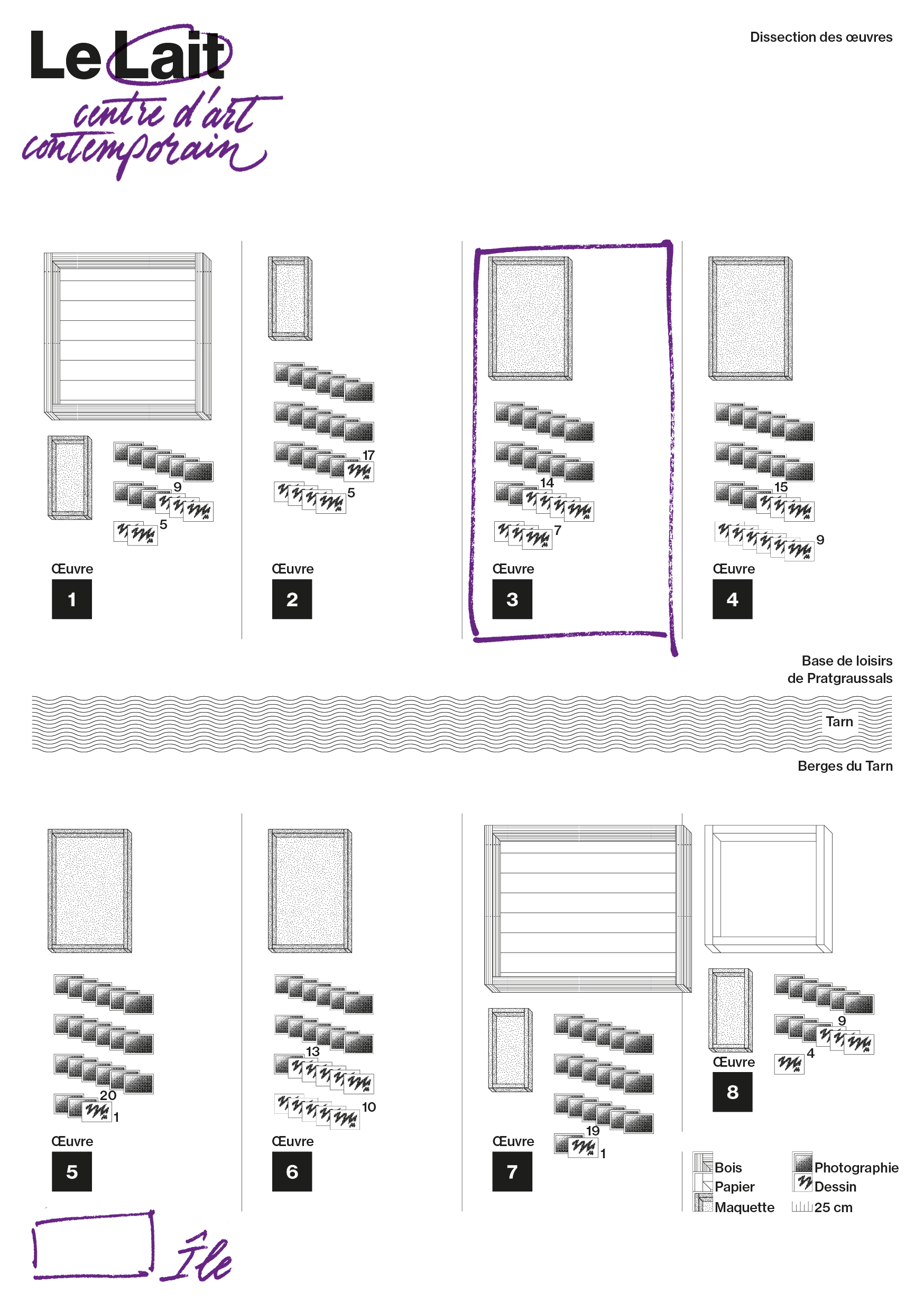 Sur la base de loisirs de Pratgraussals et les berges du Tarn, au pied du Palais de la Berbie, il crée un parcours d’installations d’images dans les espaces végétaux. Inspiré par le motif de l’île pour cette exposition, il propose une déambulation ponctuée d’images où se mêlent vrais paysages, constructions et dessins, et nous emmène dans une fiction autour la robinsonnade, ces récits d’aventure et de vie autonome dans la nature. Les constructions de David Coste, recouvertes d’images imprimées, sont autant d’écrans, d’assemblages, qui installent une relation ambigüe à leur environnement naturel, qui au final se révèle décor. Les dessins en noir et blanc, fragments de paysages, nous remémorent les lieux traversés et prennent une dimension cinématographique.