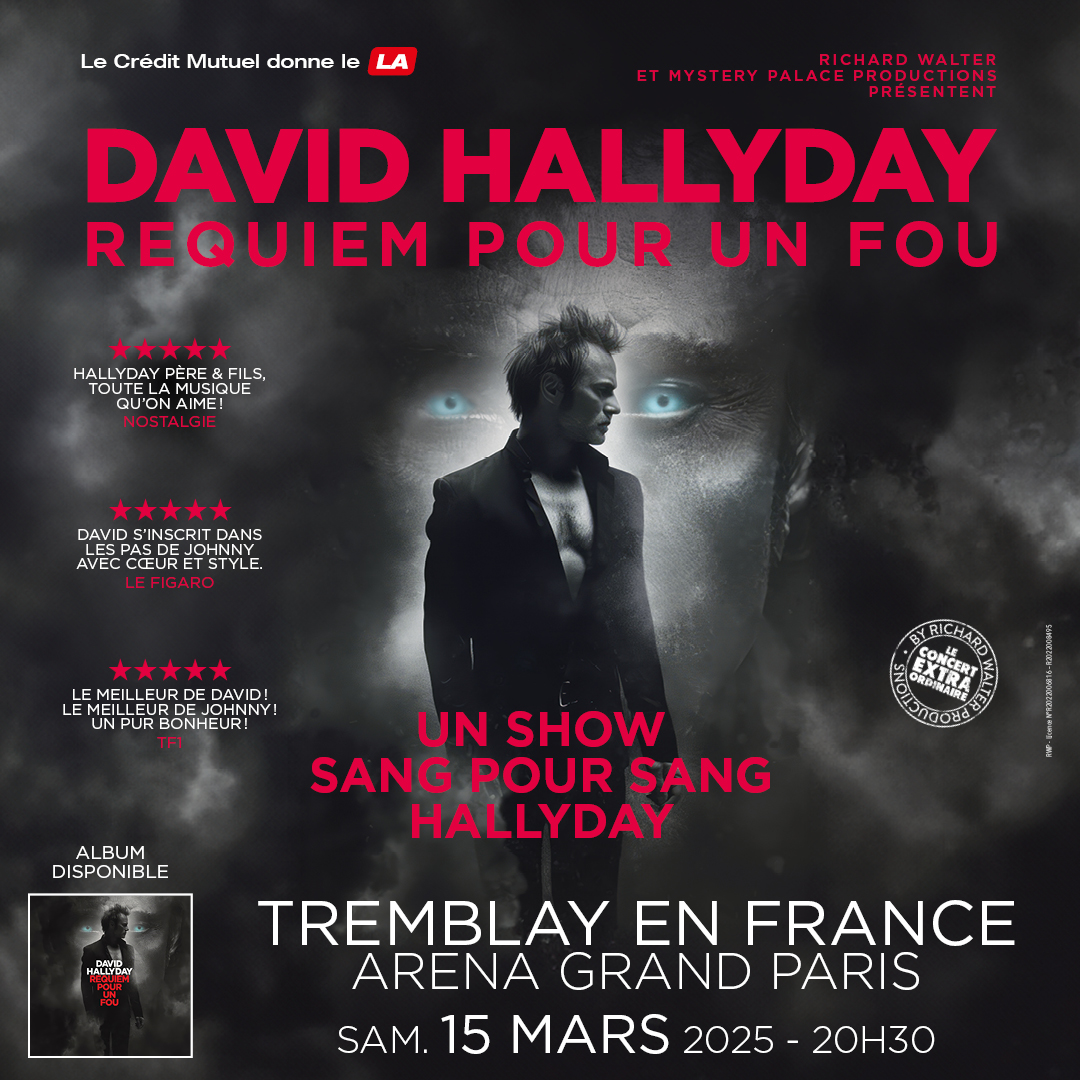 Fnac : https://www.fnacspectacles.com/event/david-hallyday-requiem-pour-un-fou-tournee-arena-grand-paris-19549074/