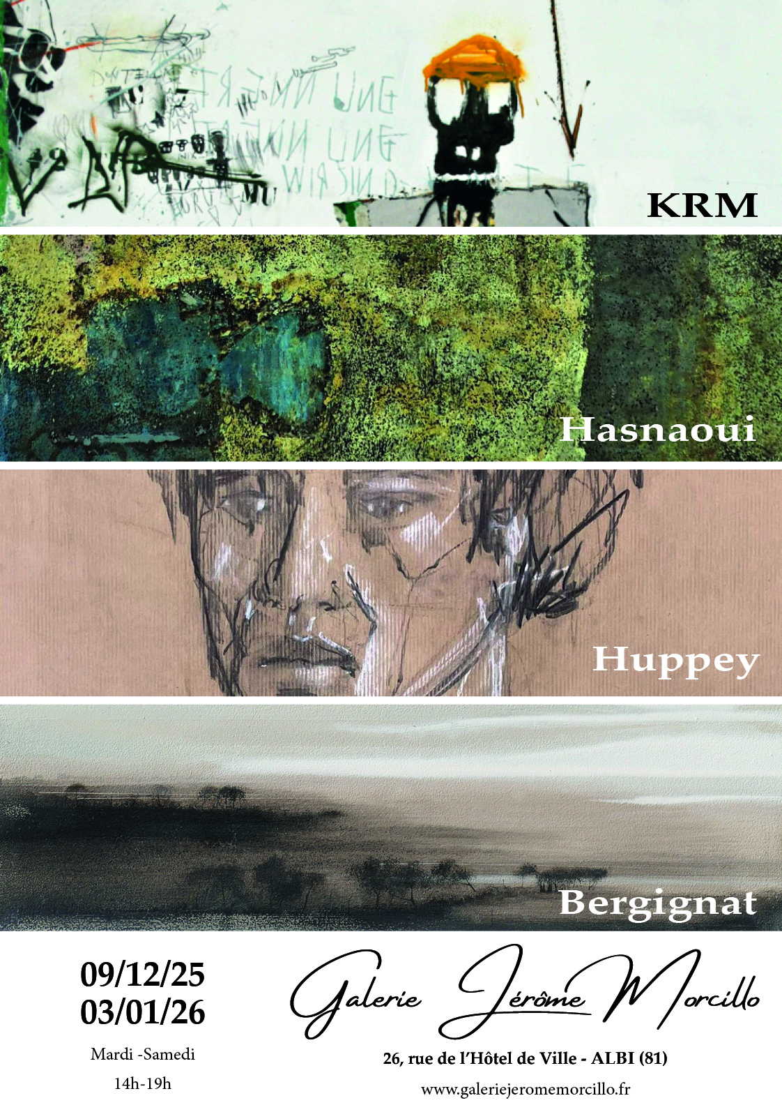 L’équipe de la galerie Jérôme Morcillo à Albi, vous invite à découvrir une exposition collective où se rencontrent dessin, peinture et une diversité de langages artistiques. Chaques artistes, tel que KRM, Hasnaoui, Huppey, Bergignat, Ivan Larra et Carr-Ortolan, apportent sa vision, son geste, son énergie propre, créant un parcours riche en contrastes et en émotions.