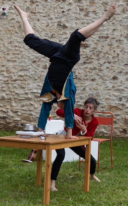 L’épopée quotidienne et surréaliste de deux femmes suspendues entre ciel et terre, entre sol et ré bémol ? Comme échappées de l’univers de Lewis Carroll , elles tentent de faire avancer le temps élastique, dansent et chantent, se disputent et trinquent. L’ennui et l’attente leur donnent des ailes…