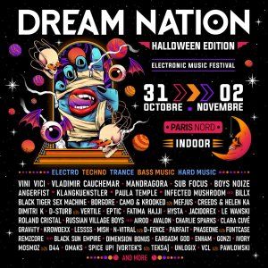 Dream Nation revient en force du 31 octobre au 2 novembre pour célébrer la plus grande et spectaculaire fête d’Halloween d’Europe ! Préparez-vous à vivre trois nuits inoubliables et frénétiques, où plus de 60 artistes de renommée internationale enflammeront 2 scènes magistrales. Cet événement grandiose célèbre la diversité du spectre électronique avec des sets envoûtants de Techno, Trance, Bass Music et Hard Music, prêts à vous faire vibrer de peur. Le Parc des Expositions de Paris Nord deviendra l’épicentre de vos sensations fortes et de vos frissons musicaux. Êtes-vous prêts à vous laisser emporter par une vague de son et de lumière ?