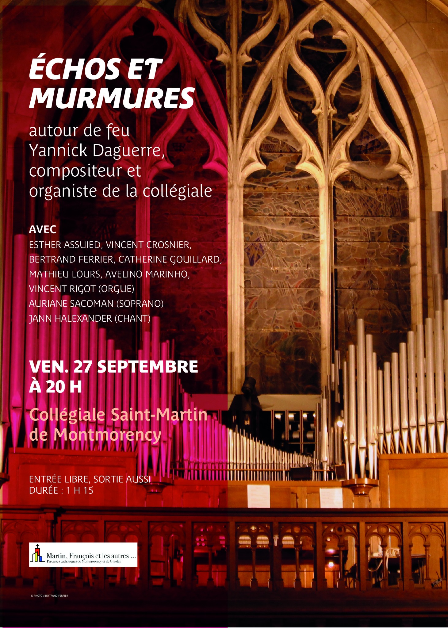 Vendredi 27 septembre, 20 h. Durée : 1 h 15. Entrée libre, sortie aussi. Collégiale Saint-Martin, Montmorency (95)