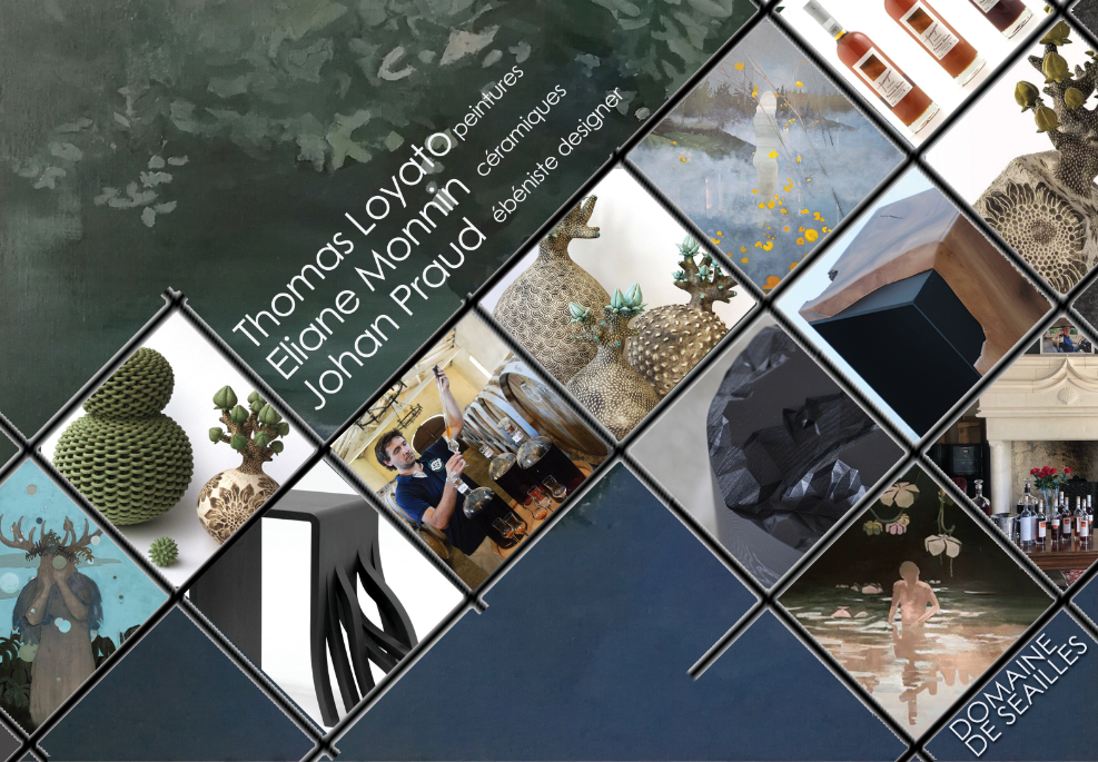 Exposition de 3 artistes dans un domaine viticole BIO : Eliane MONNIN, céramiste, Yohan PRAUD désigner ébéniste, Thomas Loyato, peintre. 3 visites des chais et dégustations des vins bio du domaine.