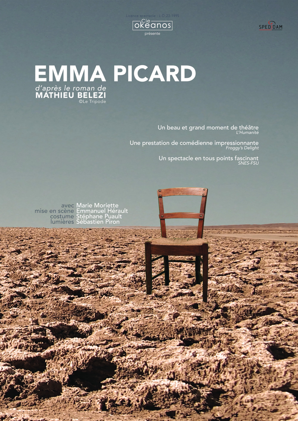 Dans les années 1860, pour échapper à la misère en France, Emma Picard part en Algérie avec ses quatre fils cultiver la terre que lui octroie le gouvernement français. Après quatre années d’épreuves, elle raconte son combat permanent pour la survie. Adaptée du roman de Mathieu Belezi, ce seule en scène apporte un éclairage singulier sur l’histoire de la colonisation et dresse le portrait d’une femme de condition modeste face à toutes les adversités.