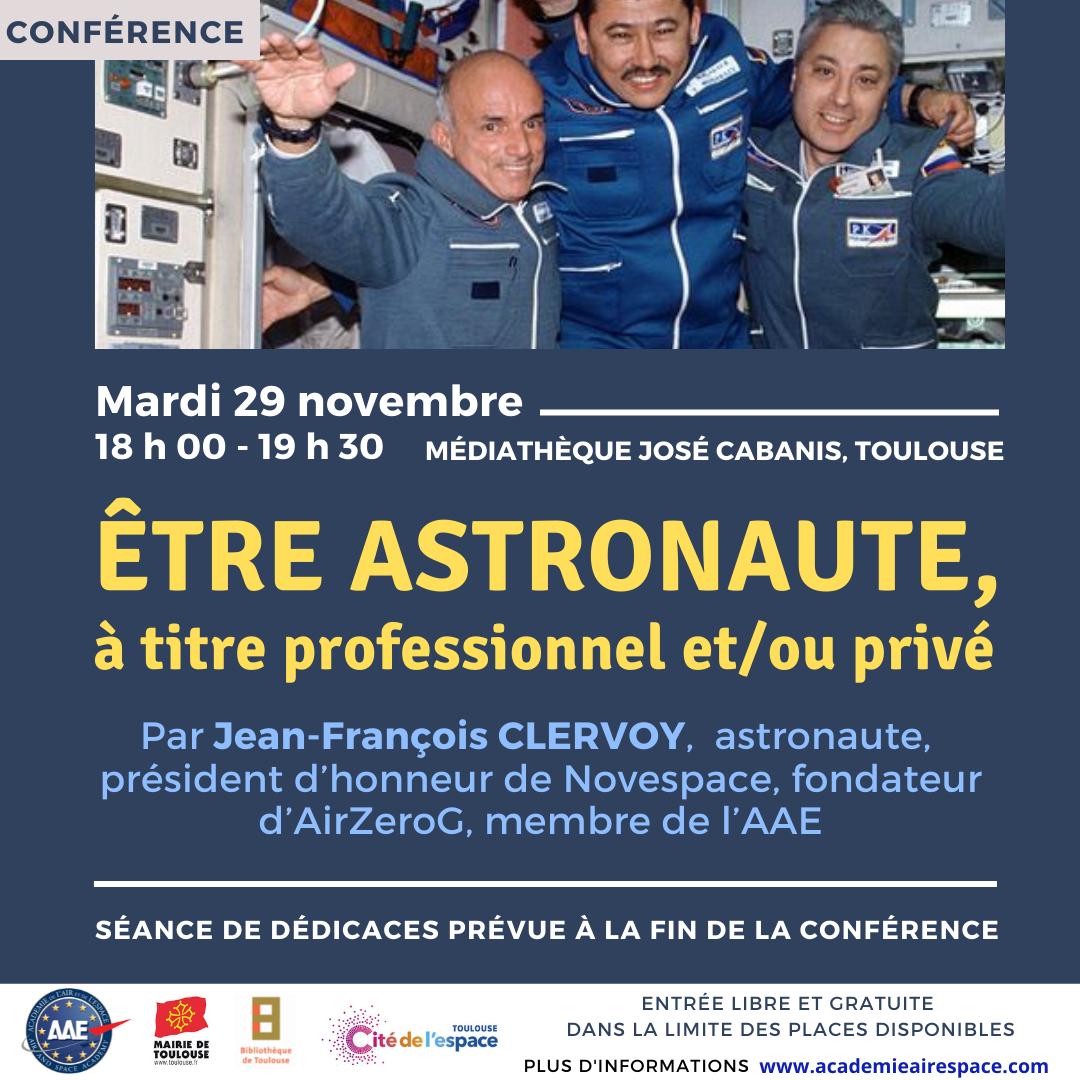 [ #conférence ] "Être #astronaute, à titre professionnel et/ou privé" 👨🚀 présentée par Jean-François Clervoy, astronaute, président d’honneur de Novespace, fondateur d’AirZeroG, membre de l’ Académie de l’air et de l’espace - Air and Space Academy