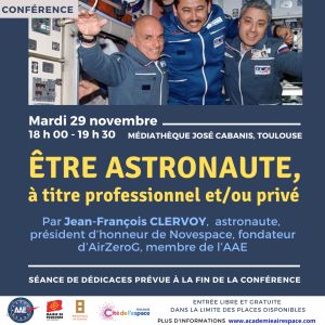 Site web : https://academieairespace.com/evenement/etre-astronaute-a-titre-professionnel-et-ou-prive/