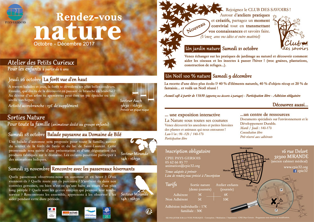Site web : http://www.cpie32.org/2017/10/05/rendez-vous-nature-programme-octobre-decembre-2017/