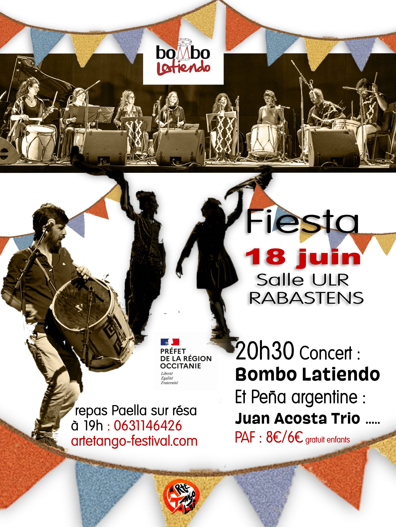 Fête traditionnelle avec CONCERTS et Peña (scène ouverte) : on y accueillera : BOMBO LATIENDO (folklore d’Argentine) - GRITO DEL MONTE ET JUAN ACOSTA (tango et folklore) etc...