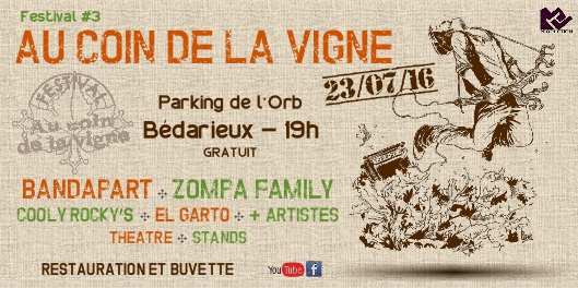 Notre association organise le 23 juillet 2016, la troisième édition du Festival Au Coin de la Vigne à Bédarieux.