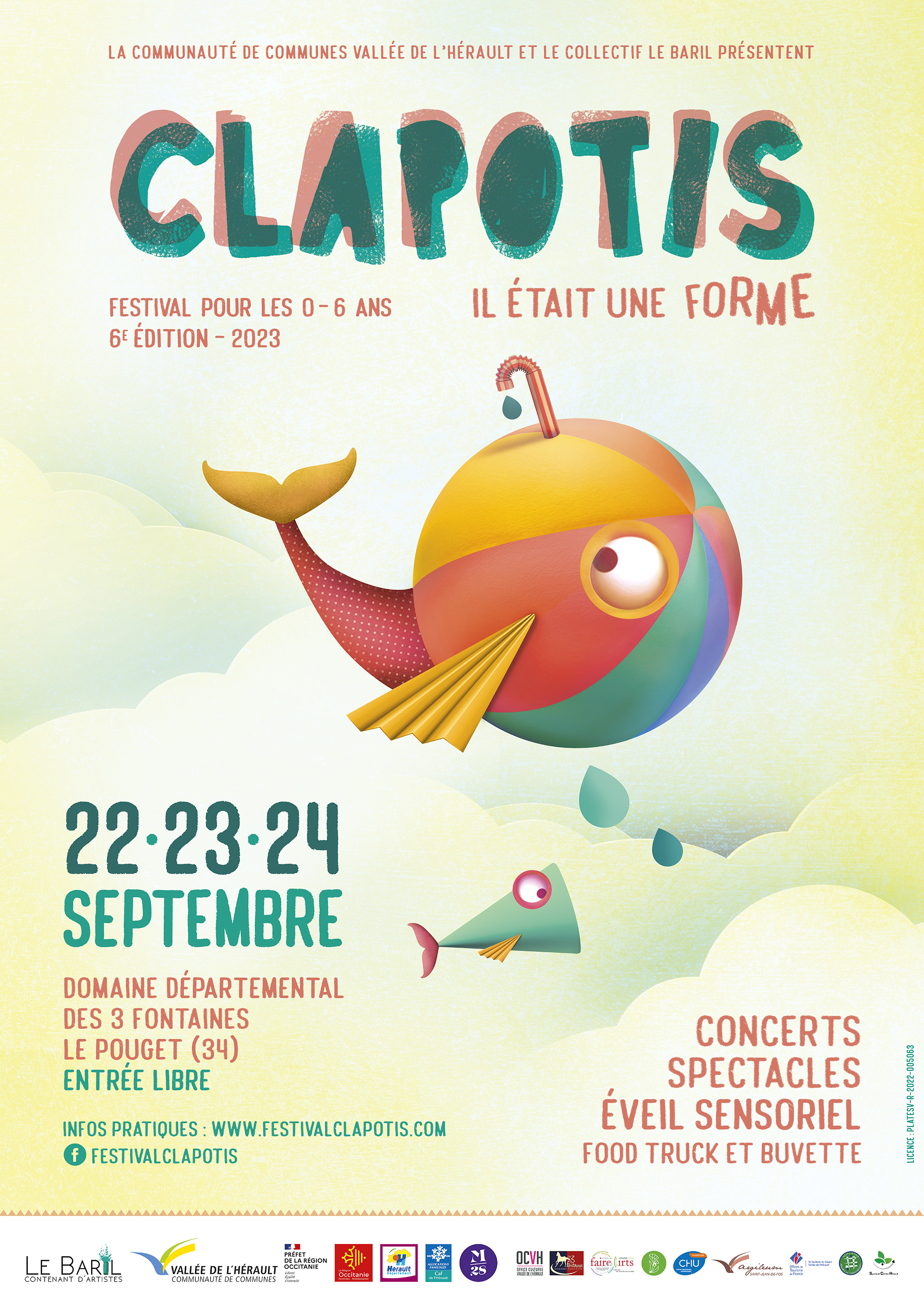 Le festival Clapotis est un festival bisannuel dédié exclusivement à l’éveil artistique et culturel du tout petit enfant (0-6 ans) en Occitanie. Ce rendez-vous gratuit est à destination des enfants, de leurs familles et des professionnel.le.s de la petite enfance et se déroule au Domaine des 3 fontaines au Pouget (Communauté de Communes Vallée de l’Hérault). Cette année, le festival prend encore une dimension supplémentaire, il fait partie des événements culturels soutenus dans le cadre de l’appel à projet Montpellier 2028.