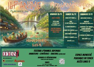 Le cinéma Ecran7 de Plaisance Du Touch organise pour la première fois Jap’Anime, un Festival d’Animés Japonais du 15 au 17 Novembre 2024. Au programme, 11 animés avec en ouverture l’avant première de Totto Chan, la petite fille à la fenêtre lauréat du prix Paul GRIMAULT au festival d’animation d’Annecy 2024. Le Samedi, 6 animés pour tous les âges sont prévus dont Panda Petit Panda, Le Grand magasin, Tunnel to summer et Jin-Roh. Un quizz récompensera les spectateurs les plus incollables sur les Animés Japonais. Enfin le Dimanche sera consacré essentiellement à l’univers d’Hayao Miyazaki avec Mon Voisin Totoro, Nausicaä de la vallée du vent, Le voyage de Chihiro ainsi qu’une conférence sur ce maître de l’animé présentée par Eléonore Dujardin, co-directrice de l’EIMA (Ecole Internationale du Manga et de l’Animation). Des animations sont organisées le Samedi et le Dimanche autour de la culture japonaise : Jeux d’Arcade, combat de Sumo, coin lecture Manga, jeux de cartes à collectionner.