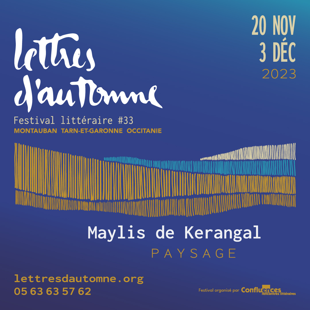 Le programme de cette 33e édition donnera à voir la richesse du parcours de Maylis de Kerangal et les multiples ramifications de son œuvre. Autrice de plusieurs romans, récits et recueils de nouvelles parmi lesquels « Corniche Kennedy » , « Naissance d’un pont » (prix Médicis), « Réparer les vivants » (dix prix pour ce roman acclamé par la presse et le public) et plus récemment « Canoës » , Maylis de Kerangal construit livre après livre une œuvre singulière et fascinante. Elle a choisi comme fil rouge du programme le thème « Paysage », motif central dans son travail, qu’elle explorera en compagnie de nombreux auteurs et artistes.