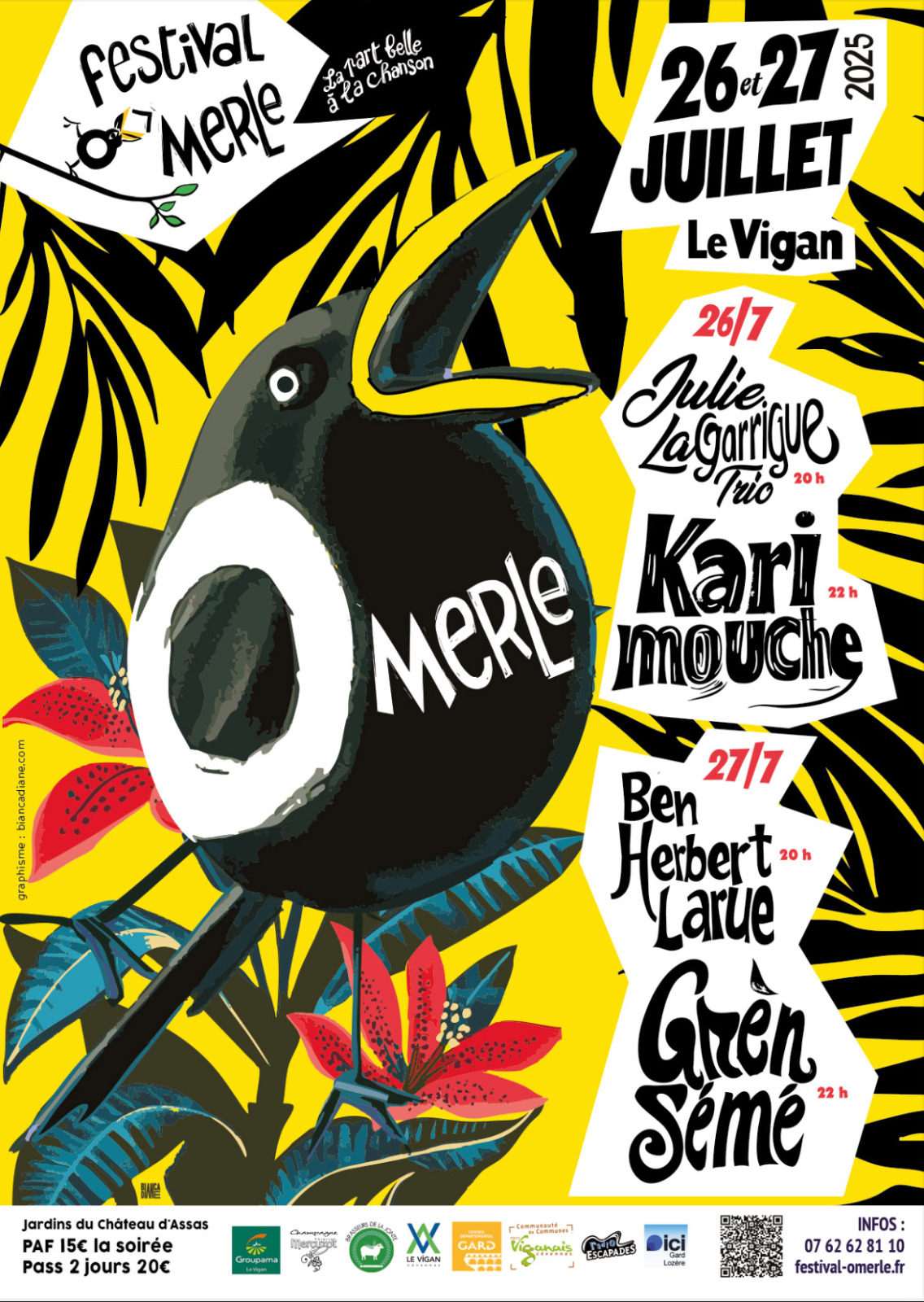Cette année encore, l’équipe du Festival Ô Merle à le plaisir de vous accueillir pour la 14ème édition du festival dans les jardins du Château d’Assas au Vigan !